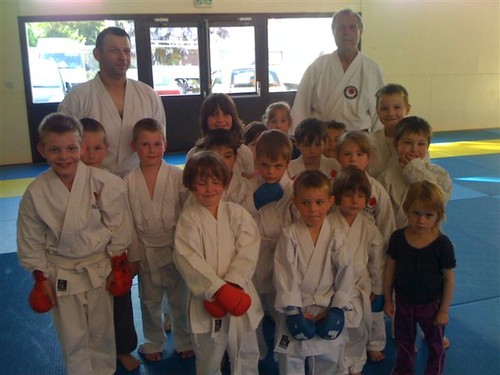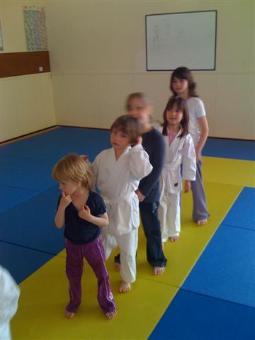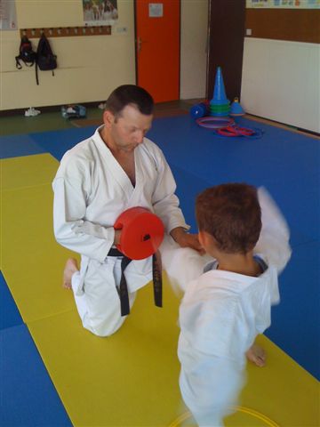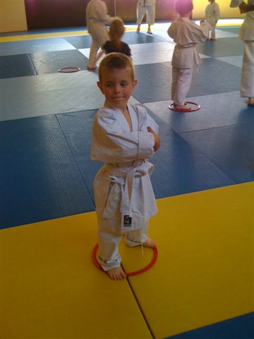 A partir de 17h15, entre 15 et 20 jeunes de 5 à 7 ans s’initient aux joies du karaté et découvrent ensemble un sport complet et sans violence.